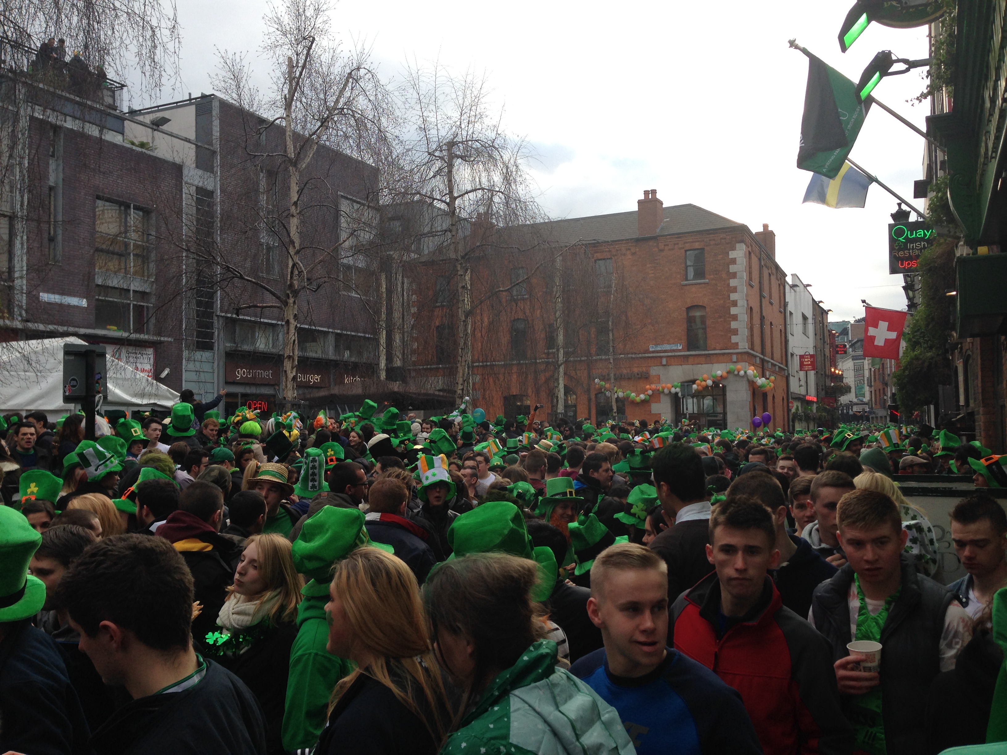 The most interesting part of that whole day besides the craziness, had to be the fact that we saw more teenagers (13-16 if not younger) drunk and acting a fool then we did people our age (20+). Now do not get me wrong I know the drinking age in Europe is quite different then America and yes I will admit at that age I threw a few back as well (sorry mom, dad, grandma and grandpa) but this was just beyond that! We watched little kids (13-16) fight, drama between girls, throwing up and more it was CRAZY! lol To put into perspective how crazy St. Paddy’s Day was in Dublin it was to the point that walking around on Monday my shoes were sticking to the ground because of all of the alcohol, never have I experienced such a thing ha. Quite the experience too!